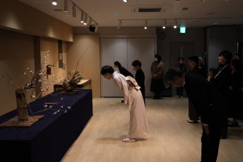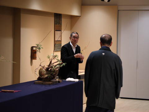 第一会場 ( 味方 氏 講義 ) ![]() ![]() ![]() 第二会場 (花 しつらえ) ![]() ![]() ![]() ![]() 器 : 古民具籠 花 : 木槿、夏藤、半夏生、五葉木通、水引 ![]() 器 : フランス製 アンティークガラス鉢 花 : 浜茄子、糊空木 ![]() 器 : ベネチアングラス 花 : 車葉白熊、岩菲仙翁、鬼灯 ![]() 器 : インドネシア製 箕籠 花 : 小鬼百合、臼の木、苗代苺、柿蘭、螢袋、沼虎尾、鬼灯、唐松草 ![]() ![]() 軸 : 花鳥図 狩野松栄 室町時代 器 : 唐物手付籠 ![]() 花 : 笹百合、古代仙翁花、秋海棠 ![]() 器 : 糸瓜形掛花籠 花 : 黒竹、桔梗 ( 白・紫 ) ![]() 七夕飾り ![]() 有職梶の葉 (丸平大木製) ![]() ![]() ![]() 2026年 2月 14日 第二回 千 宗屋 氏 ( 武者小路千家第15代家元後嗣 ) ![]()