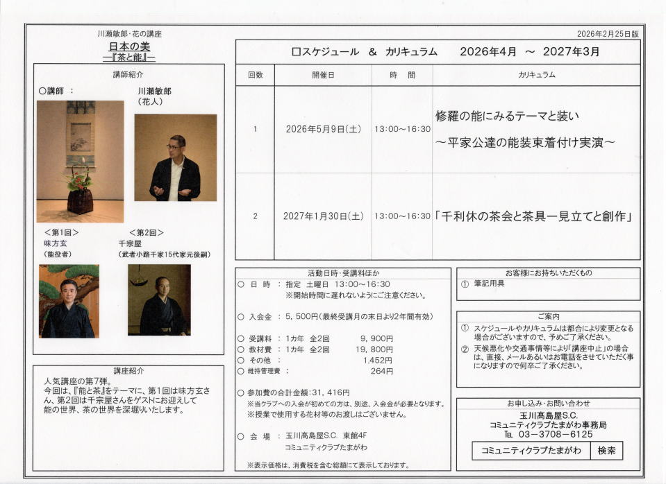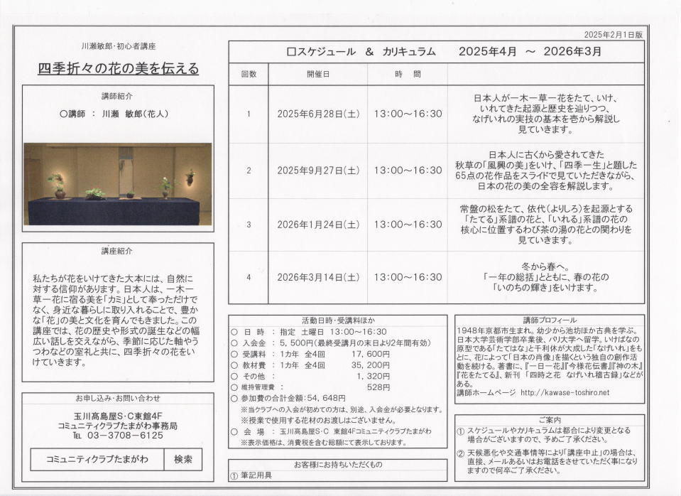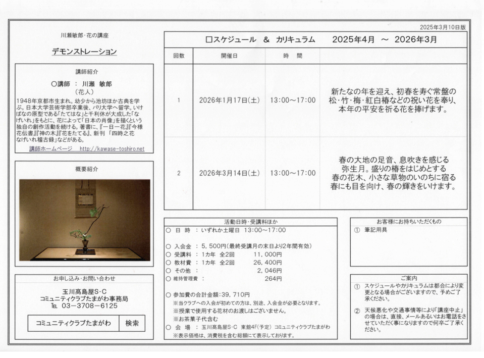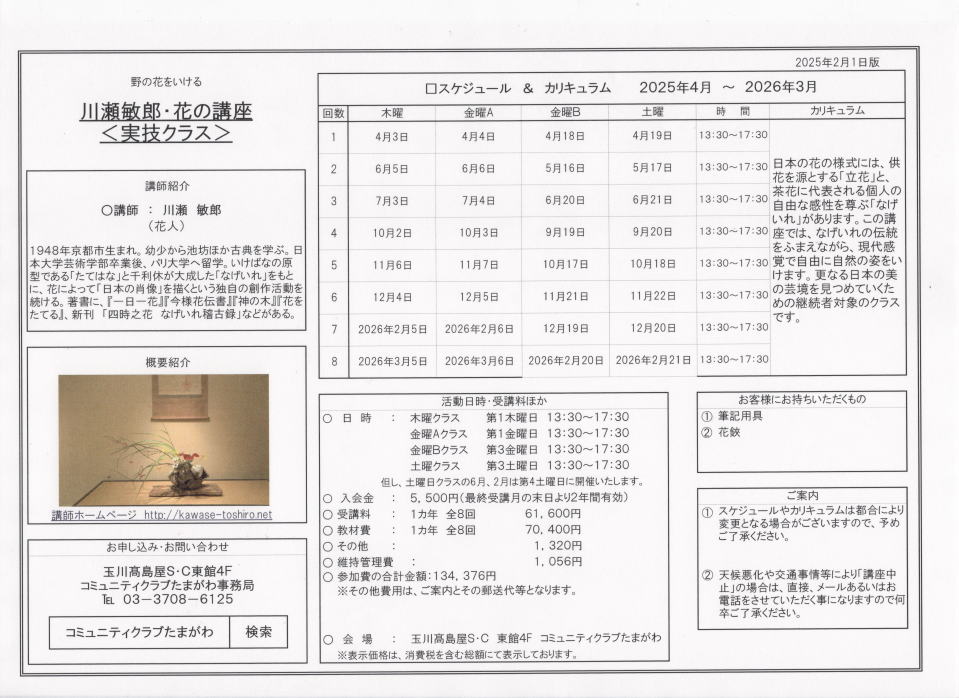 川瀬敏郎 花の講座 日程とカリキュラム ■