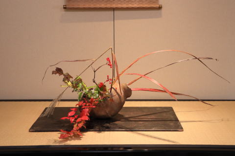 花 : 白山菊、白嫁菜、水引、青葛藤、羊歯、薄