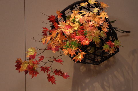 | 忍冬の実、烏瓜の実、蒲、竜胆、山鳥兜、野薊、田村草、白杜鵑草、秋丁字、釣鐘人参、鶏頭、白山吹の実、青葛藤、老爺柿、吾亦紅、水引、 | ||||||||||