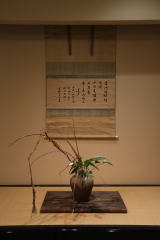 | 花: | 蝋梅(葉付)、寒菊、白侘助椿、藤豆、椿各種(白玉椿他)、水仙、松、桧、竹、笹、木大角豆、茶の木、杉、山躑躅、小楢、天南星、白菊、 | |||||||||||