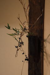 | 野菊、家菊、冬苺、青葛藤、屁糞葛、定家葛、老爺柿、柊、辛夷、桐、雲龍梅、野茨、薔薇、山百合の実、烏瓜の実、綿、朴の葉、 | ||||||||||||