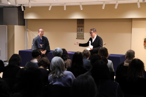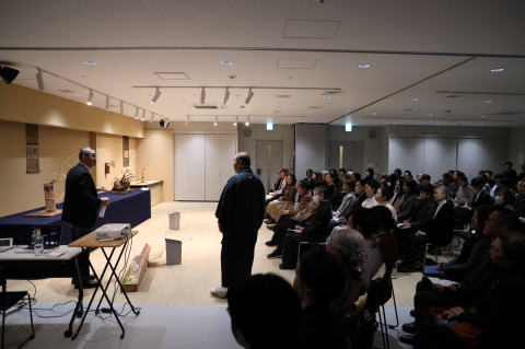 第一会場 ( 味方 氏 講義 ) ![]() ![]() ![]() 第二会場 (花 しつらえ) ![]() ![]() ![]() ![]() 器 : 古民具籠 花 : 木槿、夏藤、半夏生、五葉木通、水引 ![]() 器 : フランス製 アンティークガラス鉢 花 : 浜茄子、糊空木 ![]() 器 : ベネチアングラス 花 : 車葉白熊、岩菲仙翁、鬼灯 ![]() 器 : インドネシア製 箕籠 花 : 小鬼百合、臼の木、苗代苺、柿蘭、螢袋、沼虎尾、鬼灯、唐松草 ![]() ![]() 軸 : 花鳥図 狩野松栄 室町時代 器 : 唐物手付籠 ![]() 花 : 笹百合、古代仙翁花、秋海棠 ![]() 器 : 糸瓜形掛花籠 花 : 黒竹、桔梗 ( 白・紫 ) ![]() 七夕飾り ![]() 有職梶の葉 (丸平大木製) ![]() ![]() ![]() 2026年 2月 14日 第二回 千 宗屋 氏 ( 武者小路千家第15代家元後嗣 ) ![]()